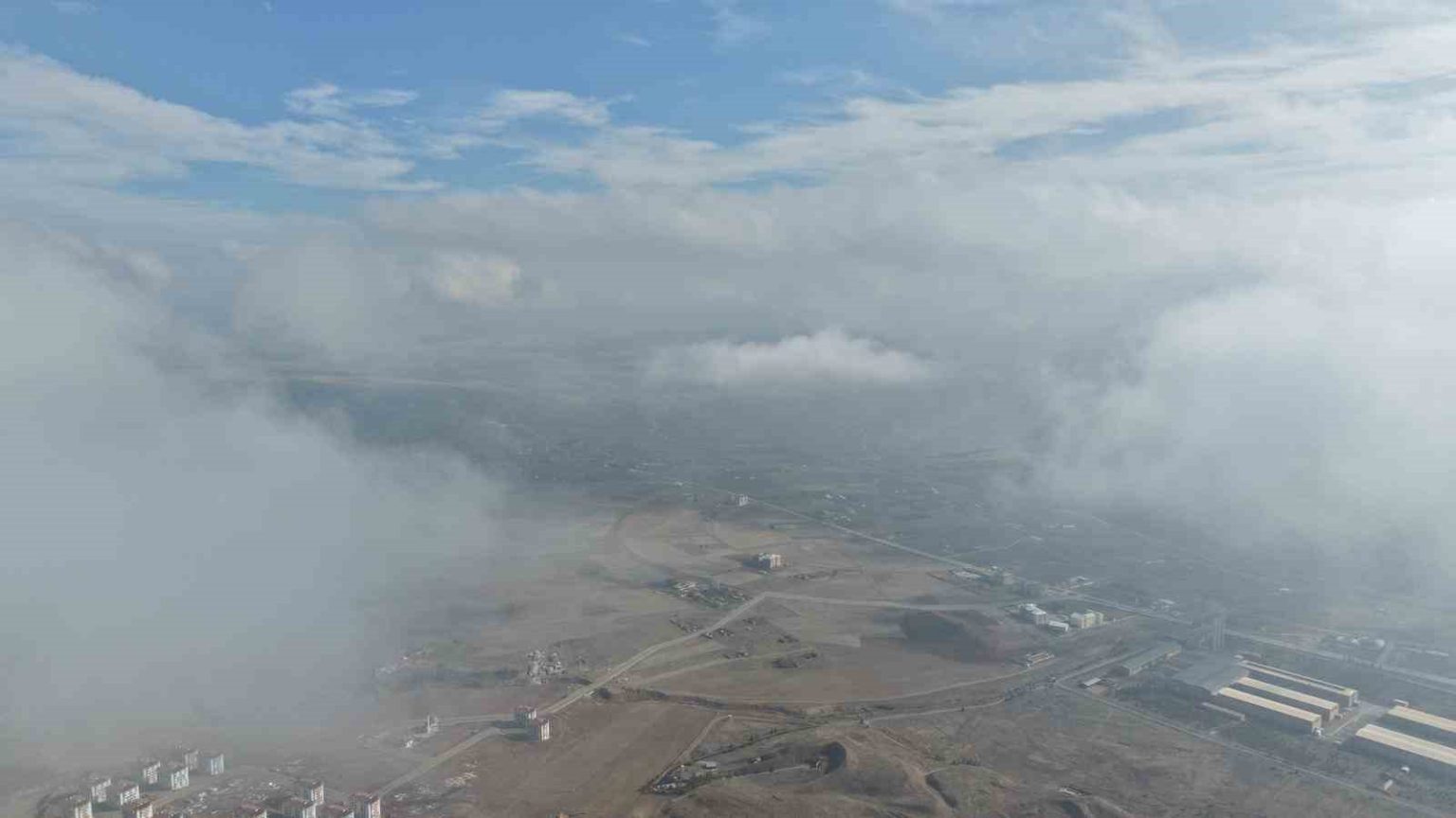 Çankırı’da kent merkezinin üzerini kaplayan sis bulutu havadan görüntülendi.