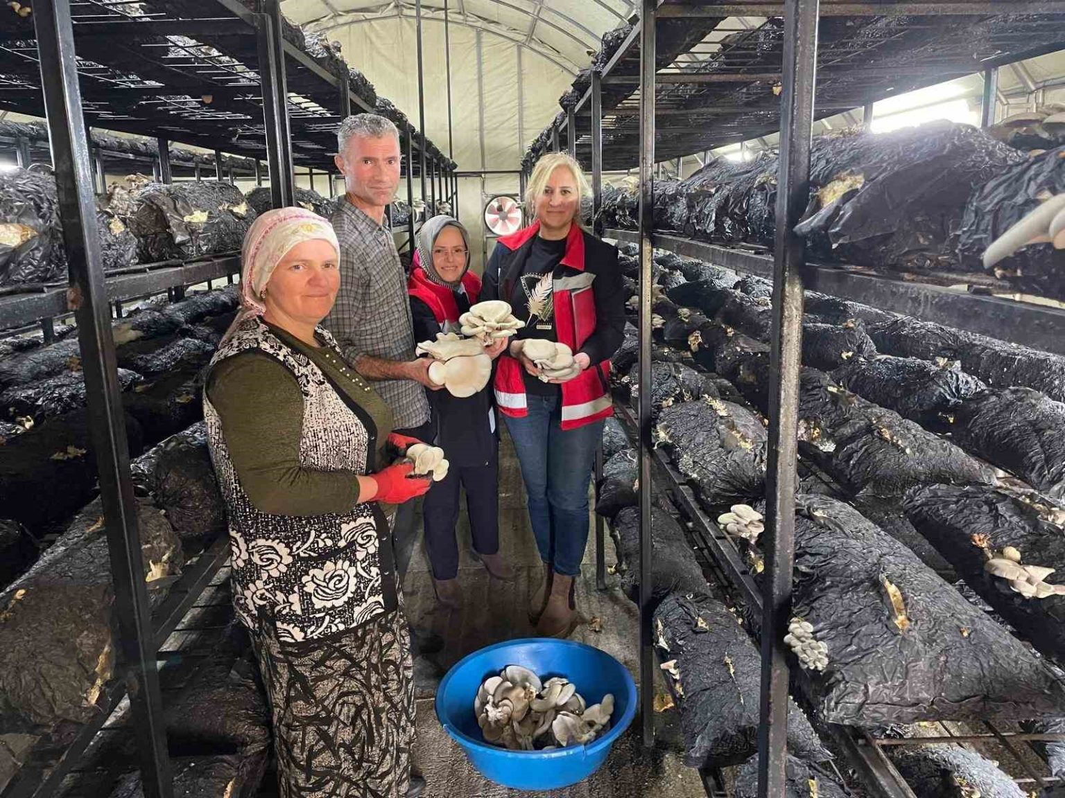 Yeniköseli Mahallesi’nde üretim yapan aile ile bir araya gelinen programda, mantar yetiştiriciliğine ilişkin teknik ve dijital bilgilendirmelerde bulunuldu. Ziyaret sırasında üreticilere hijyen ve güvenli üretim esasları hakkında bilgi verilirken, iklimlendirme ortamında teknoloji kullanımının önemi vurgulandı.