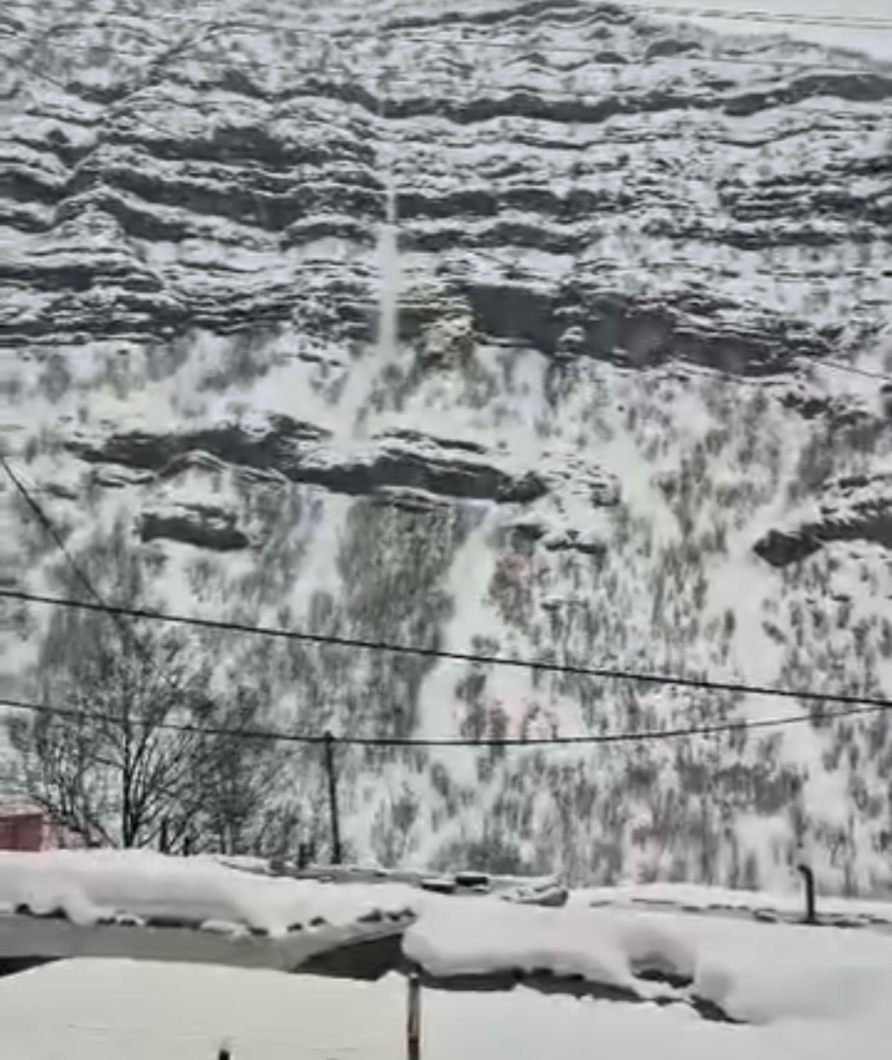 Şırnak’ta dağlarda biriken karın düşme anı cep telefonu kamerasına yansıdı.