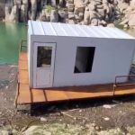 Aydın’da suların yükseldiği Çine Adnan Menderes Barajı’nda sürüklenen konteyner baraka ilginç görüntü sundu.