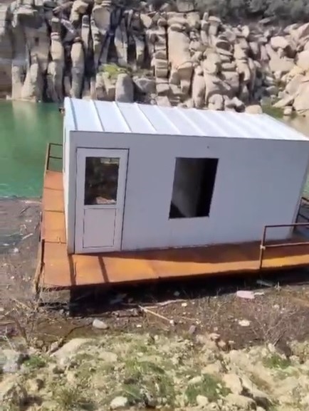 Çine Adnan Menderes Barajı’nda su seviyesi sevindirici derecede yükseldi. Son yağışların ardından barajdaki doluluk oranının artması bölge halkını ve çiftçileri memnun etti. Barajda yükselen su seviyesinin ardından ilginç bir görüntü de ortaya çıktı. Balıkçılara ait olduğu tahmin edilen yüzen bir konteyner baraka, suyun etkisiyle sürüklenerek barajın iç kısımlarına kadar ilerledi. Baraj çevresinde bulunan vatandaşlarca fark edilen yüzen barakanın nereden geldiği merak konusu olurken, görüntüler kısa sürede dikkat çekti.