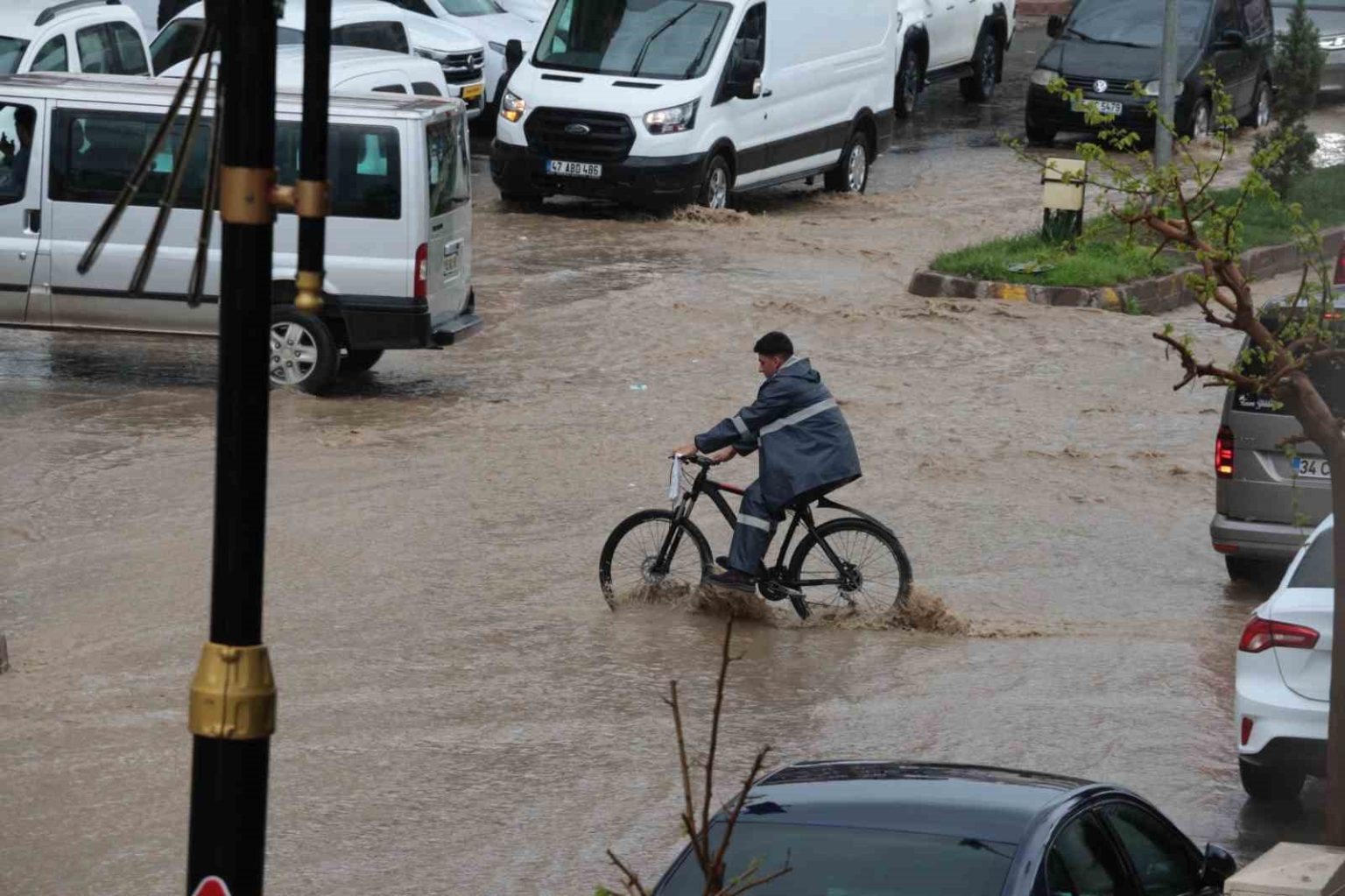 Şırnak’ın Cizre ilçesinde aniden bastıran sağanak yağış, hayatı durma noktasına getirdi. Yağış nedeniyle cadde ve sokaklar adeta göle dönerken, sürücüler ve yayalar yollarda ilerlemekte güçlük çekti.