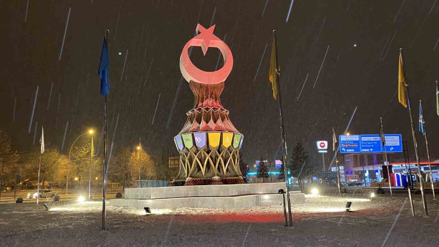 Çorum’da yüksek kesimlerde etkili olan kar yağışı gece saatlerinde şehir merkezine de ulaştı. Hava sıcaklığının düşmesiyle birlikte başlayan lapa lapa kar yağışı, caddeleri, parkları ve araçların üzerini beyaz örtüyle kapladı. Aniden bastıran kar yağışıyla birlikte tarihi Saat Kulesi ve çevresinde kartpostallık görüntüler oluştu. Yılın son gününde gelen kar yağışı ile birlikte Çorum Belediyesi’ne bağlı kar küreme ve tuzlama ekipleri, şehir içinde ulaşımın olumsuz etkilenmemesi için çalışmalarını sürdürüyor. Öte yandan yağışın aralıklarla devam etmesi bekleniyor.