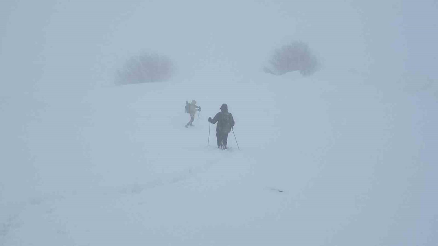Ağrı’da 2 bin 450 rakımdaki Bubi Dağı zirvesine ulaşan dağcılar, kar ve rüzgâra karşı verdikleri mücadeleyi başarıyla tamamladı.