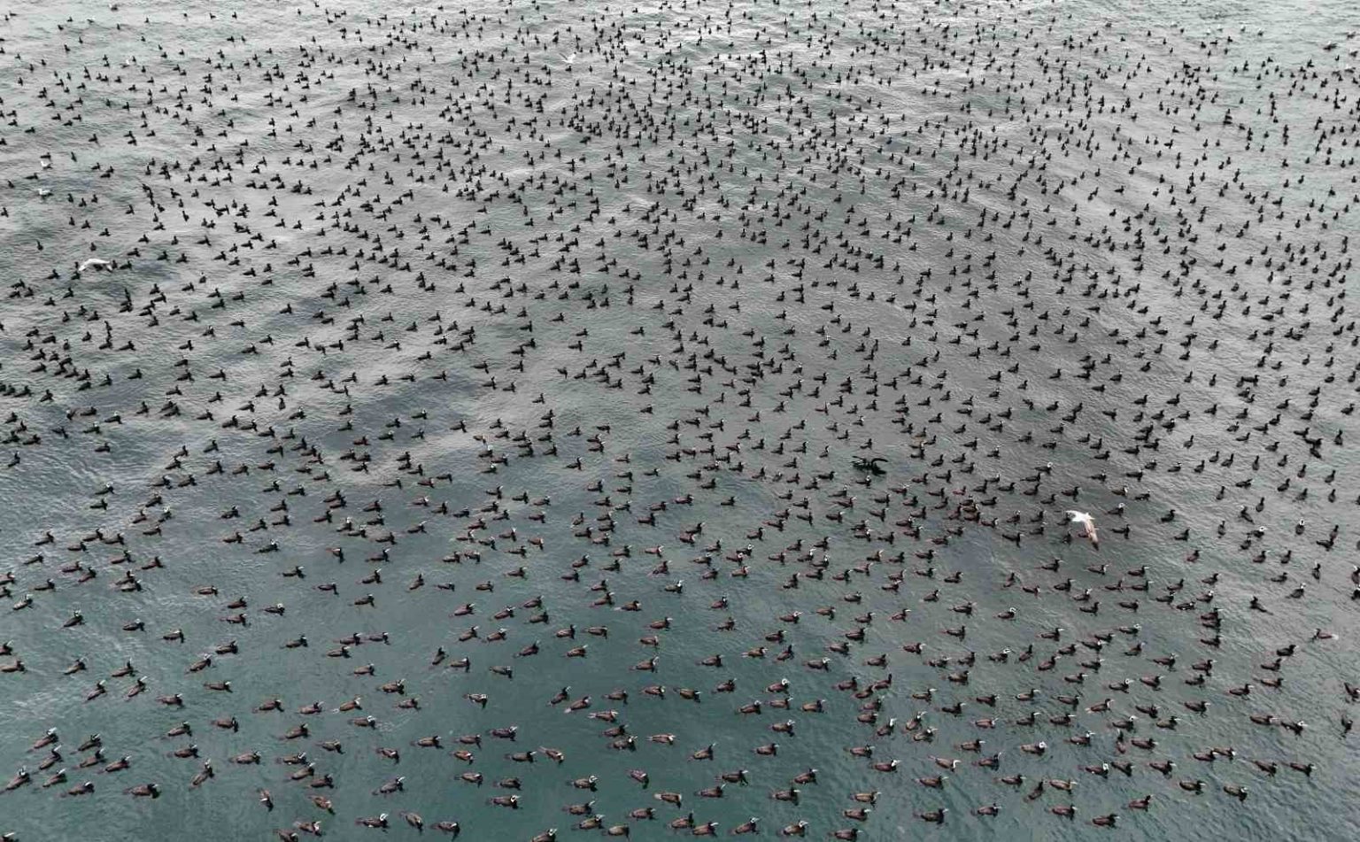 Havadan kaydedilen görüntüler, karabatakların sürü davranışını ve Marmara Denizi’nin kış aylarındaki ekolojik yapısını net şekilde ortaya koydu. Uzmanlar, bu tür doğa olaylarının bölgenin biyolojik çeşitliliği açısından önem taşıdığına dikkat çekiyor.