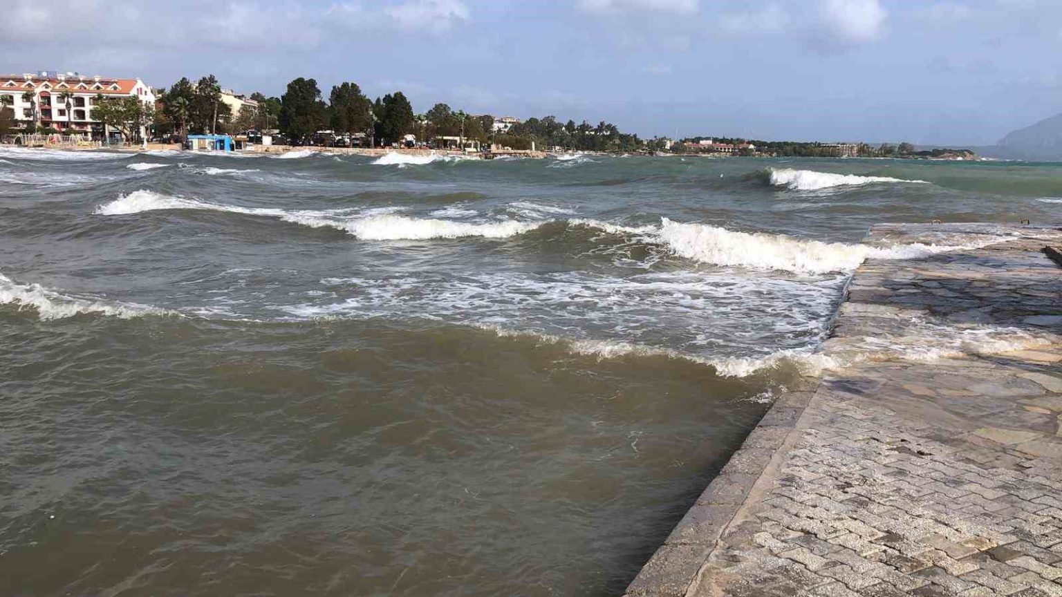 Muğla’nın Datça ilçesinde etkili olan şiddetli lodos günlük yaşamı olumsuz etkiledi.