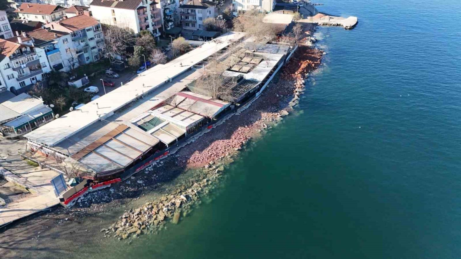 Kocaeli Büyükşehir Belediyesi tarafından Ulaşlı sahilinin ardından Değirmendere’de de vatandaşların can ve mal güvenliğini sağlamak için sahil düzenleme çalışmaları başlatıldı. Değirmendere Kayık Çekek Yeri’nin doğusunda planlanan 200 metre uzunluğundaki dalgakıran projesi için ekipler yoğun bir çalışma yürütüyor. Sahildeki eski beton kalıntılarını temizleyen Büyükşehir ekipleri, fore kazık makinesinin çalışabilmesi için alanda zemin platformu oluşturdu.