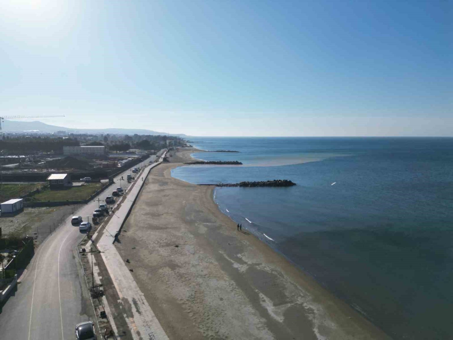 Hatay’ın Arsuz ilçesinde denizde yaşanan 10 metrelik çekilme vatandaşlarda tedirginliğe yol açtı. Etkisini gösteren deniz çekilmesi havadan görüntülendi.