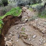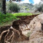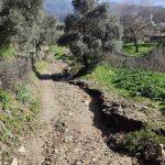 Aydın’ın Efeler ilçesi İlyasdere Mahallesi’nde yoğun yağışlarla birlikte taşan ve yön değiştiren dere, zeytin bahçelerini sular altında bırakırken, toprağın aşınmasıyla birlikte adeta ikinci bir dere yatağı oluştu.
