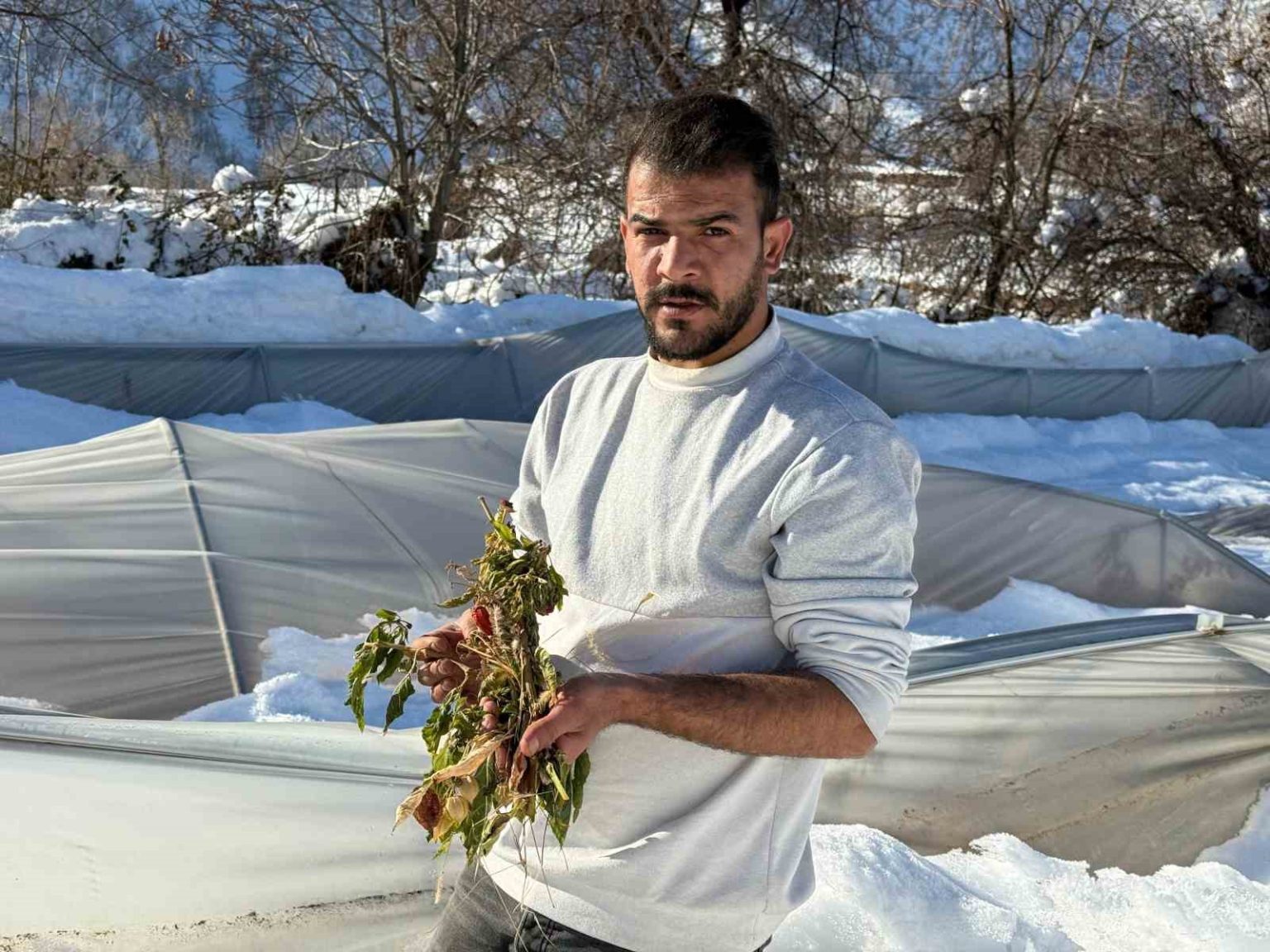 Hakkari’nin Derecik ilçesinde geçen hafta etkili yoğun kar yağışı nedeniyle 38 sera zarar gördü.