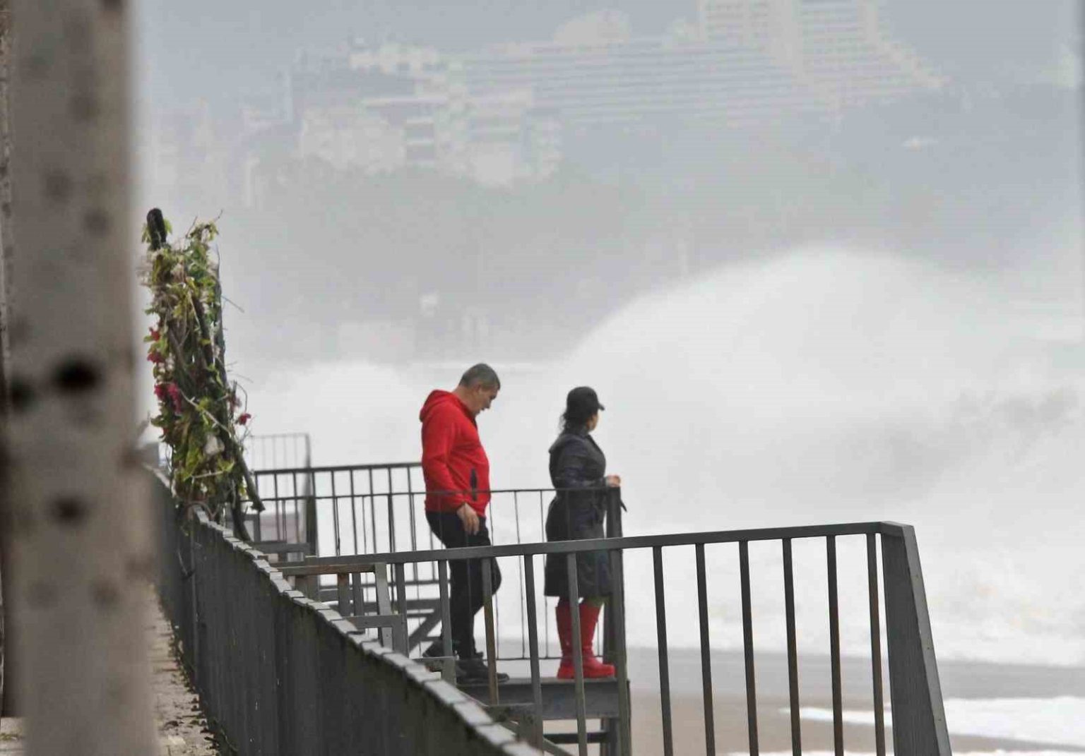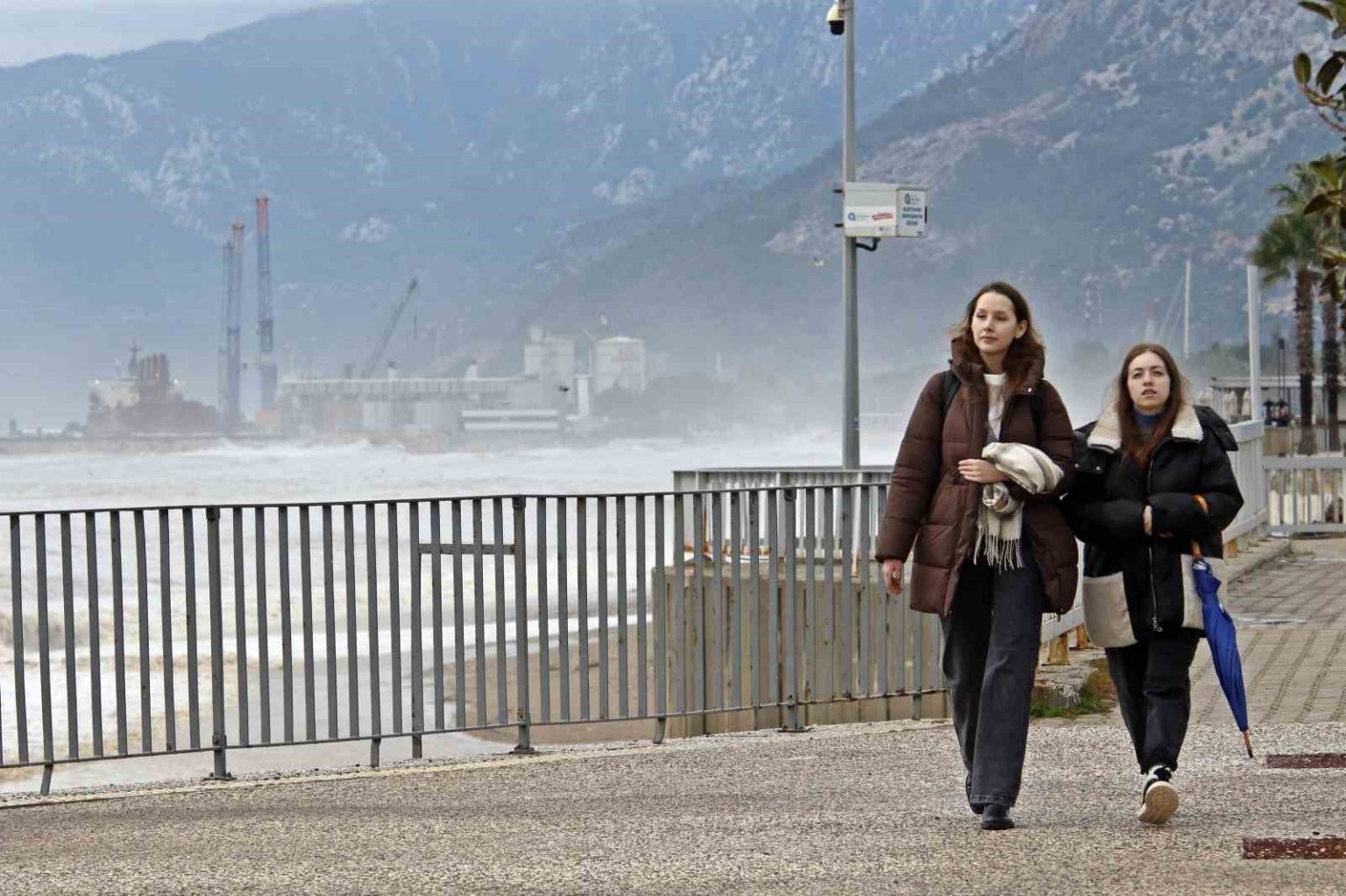 Meteoroloji 4. Bölge Müdürlüğü tarafından dün akşam ve bugün için ’sarı kod’ uyarısı yapılan turizm kenti Antalya’da, gece saatlerinde başlayan yağış ve şiddetli rüzgar hayatı olumsuz etkiledi. Sabah saatlerinde yağış etkisinin yitirirken, Konyaaltı Sahili’nde boyu yaklaşık 4 metreye kadar ulaşan dev dalgalar oluştu. Kıyı şeridine gelen vatandaşlar da, dalgaların dövdüğü sahili cep telefonlarıyla görüntüledi.