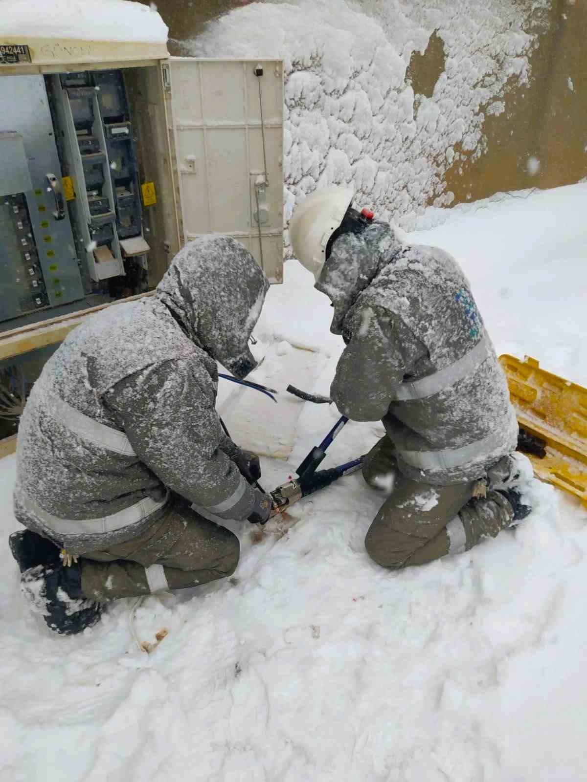 Mardin’de de kar yağışının etkisini artırmasıyla birlikte diğer illerde olduğu gibi Dicle Elektrik bünyesinde bir kriz merkezi oluşturuldu. Kent merkezine uzak mahalle ve köylere ulaşımın zorlaştığı bölgelerde arızalara anlık müdahale edilebilmesi için çalışmalar bu merkezden yönlendiriliyor. Şırnak’ta yer yer bir metreyi bulan karla mücadele eden ekipler, zorlu hava şartlarına rağmen enerji akışının devamlılığını sağlamak amacıyla çalışmalarını kararlılıkla yürütüyor.