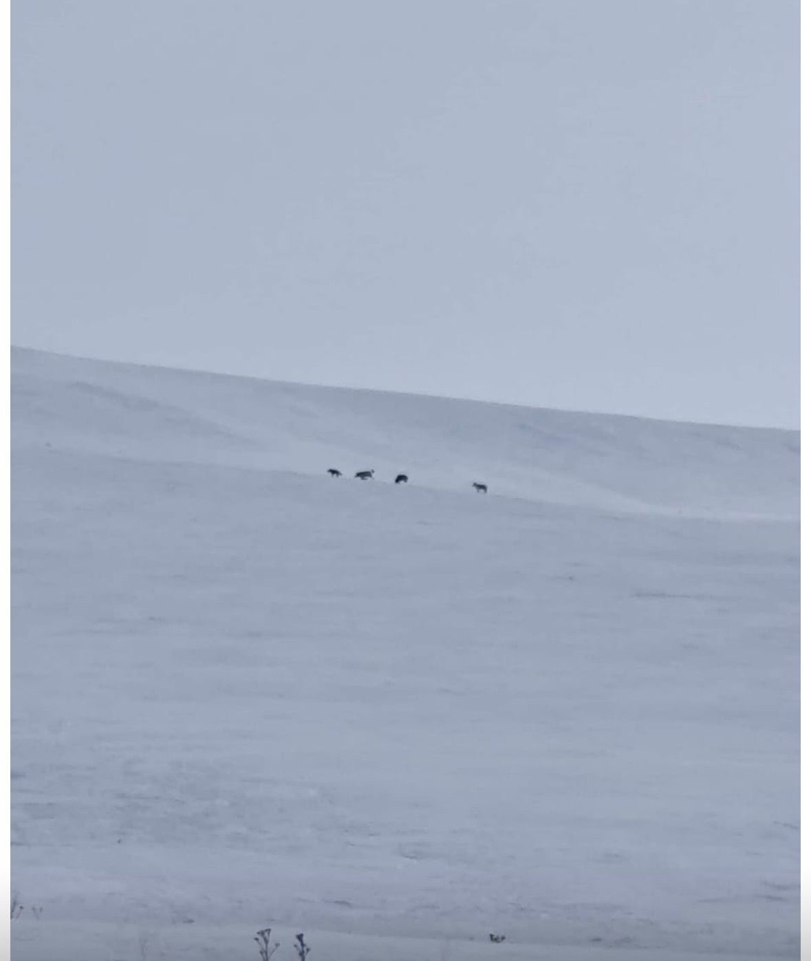 Ağrı’nın Diyadin ilçesinde etkili olan yoğun kar yağışının ardından kırsal alanda kurt sürüsü görüntülendi.