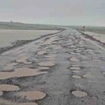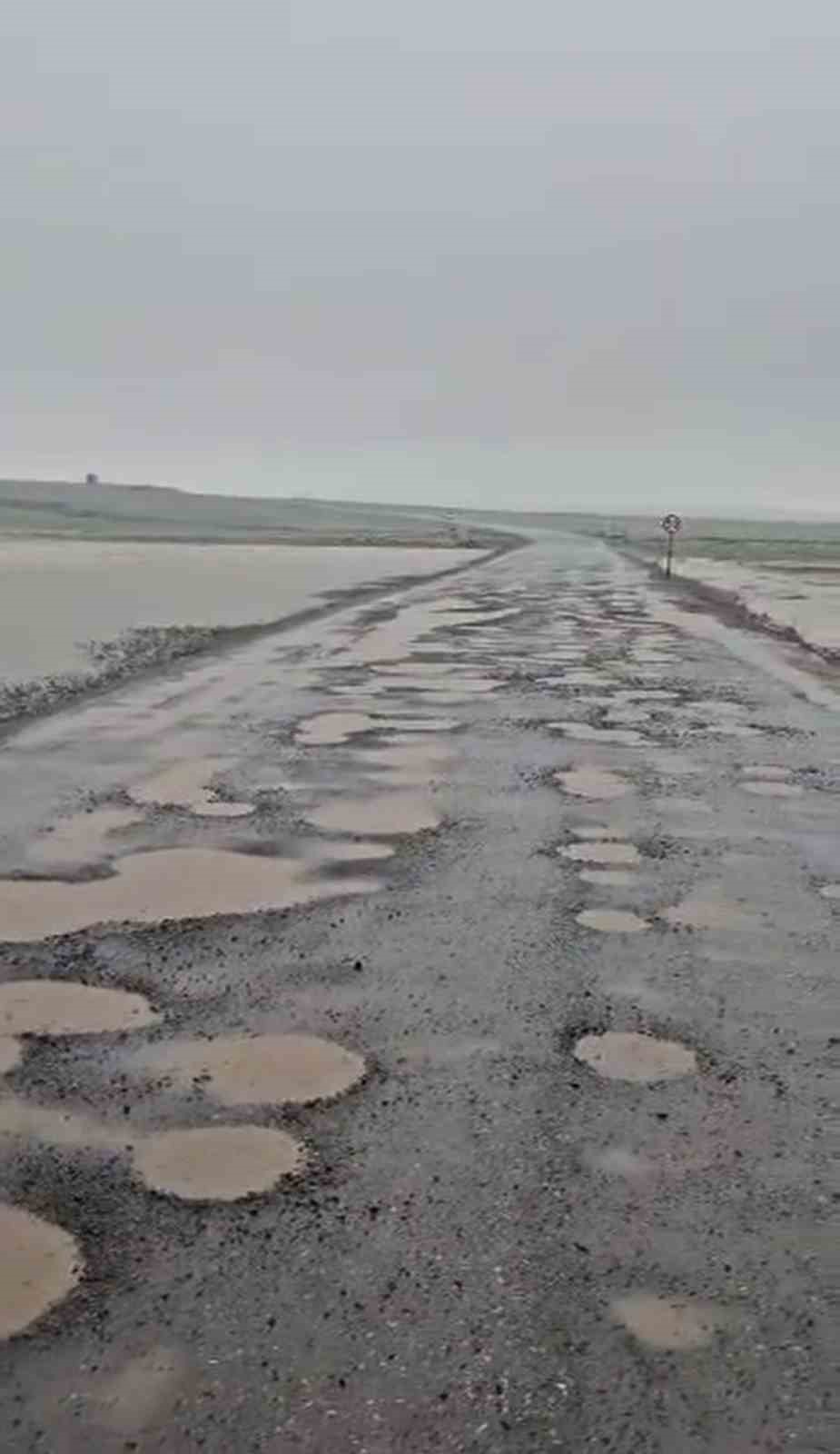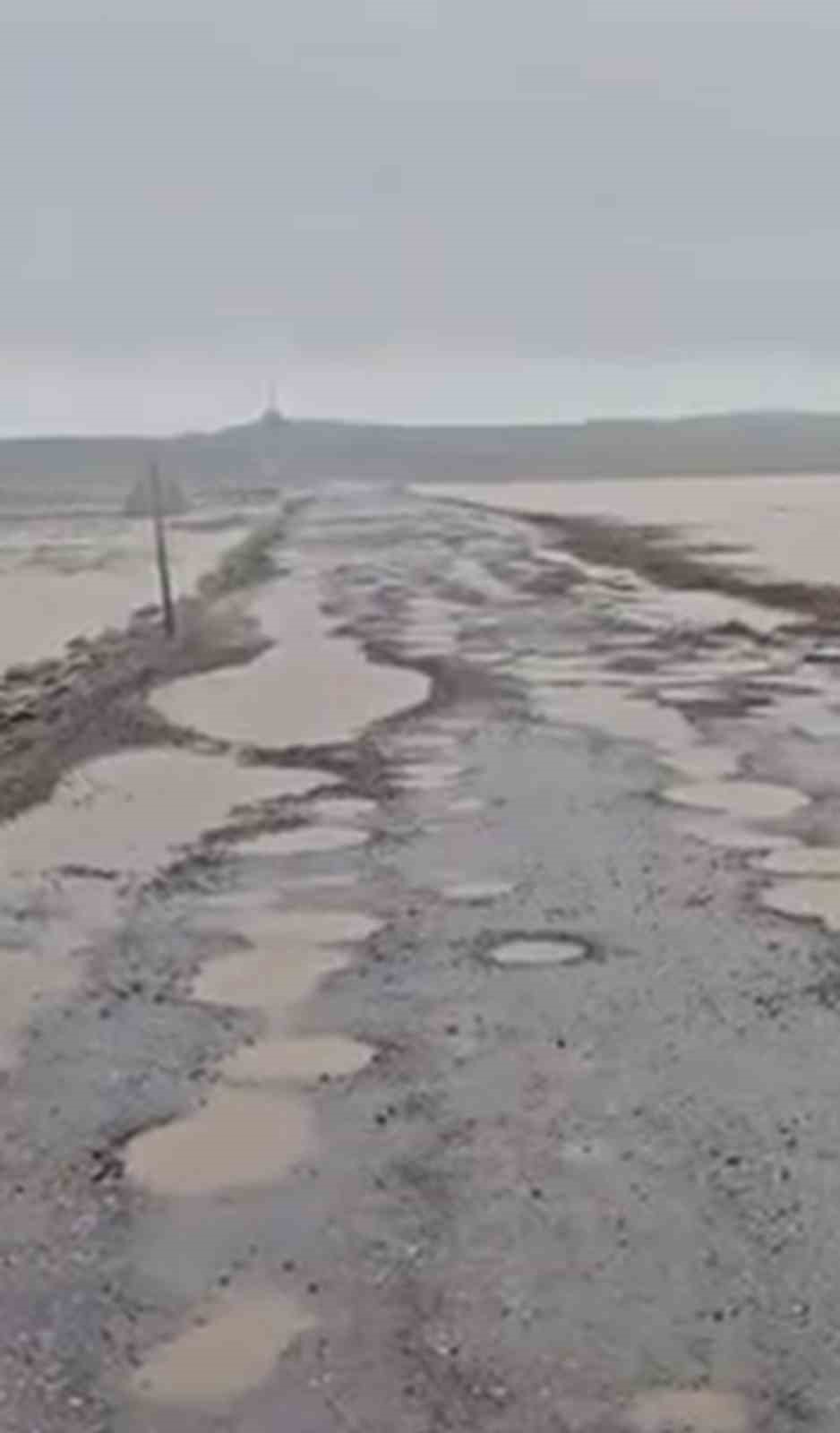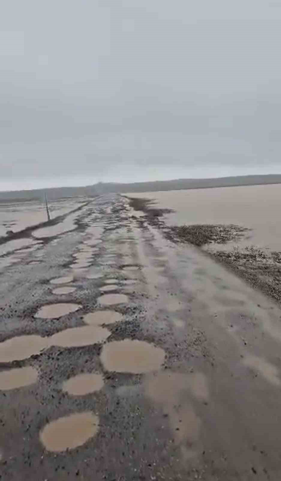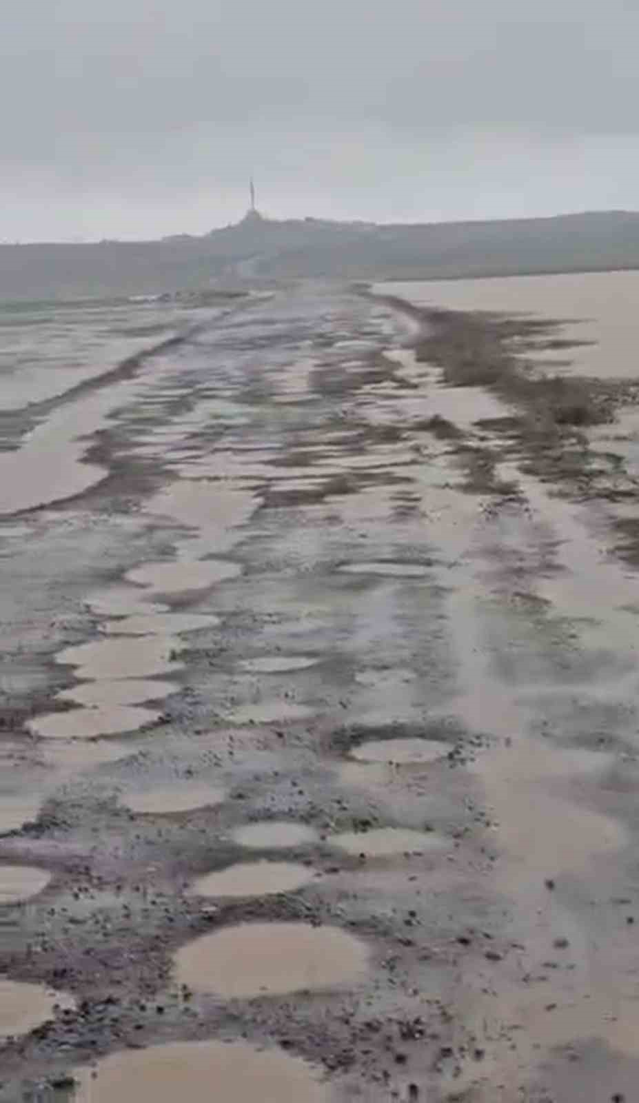Diyarbakır’ın Çermik ilçesinde bozuk olan yollarda sağanak sonrası su birikintileri oluştu.