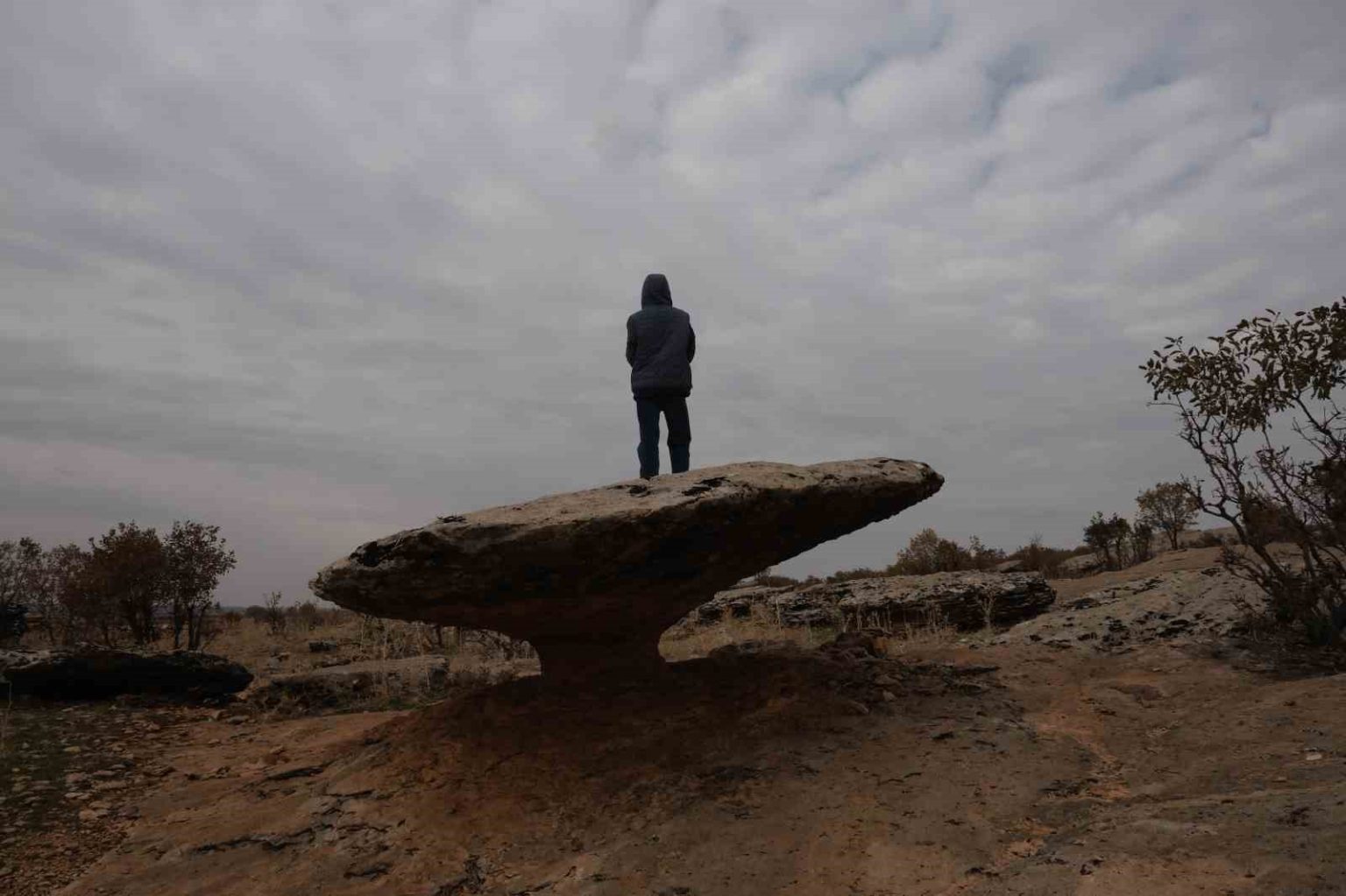 İlçe merkezine yaklaşık 4 kilometre uzaklıktan olan “mantar kaya” veya diğer adıyla “kalkan kaya”, hayrete düşüren yapısıyla dikkat çekiyor. İnce bir sütunla ayakta duran geniş kaya parçası, yıllara meydan okuyor. Antropolog Naci Akdemir, bulunulan yerin sediment tortulu kaya kütlelerinden oluşan bir zemin olduğunu söyledi. Arazinin, Afrika-Arabistan plakasının Avrasya’yı kuzeye doğru itmesiyle oluştuğunu belirten Akdemir, bu arazinin şu anda hem yükseldiğini hem de kuzeye doğru gittiğini ifade etti. Antropolog Akdemir, sürecin aşağı yukarı 250-300 milyon sene önce başlamış bir süreç olduğunu vurgulayarak, “Yükselmeye devam ediyor. Bilginlerin söylediğine göre, ilerleme hızı, tırnakların büyüme hızı kadardır. Yani yılda 10-15 milimetre kadar kuzeye doğru gidiyor. Şu gördüğümüz yapı ise coğrafyacıların ’şeytan masası’ veya ’mantar kayası’ dediği oluşumun tipik ve de en güzel örneklerinden bir tanesidir” dedi.