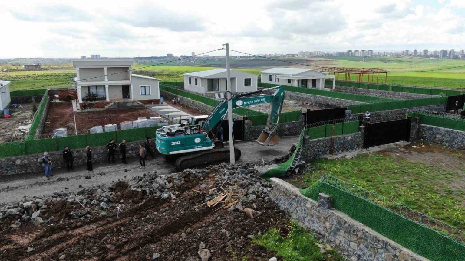 Diyarbakır’ın Yenişehir ilçesinde “villa” tarzında inşa edilen 13 kaçak yapının yıkımına başlandı.
