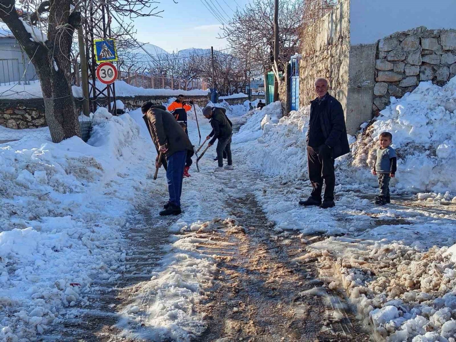 Diyarbakır’da vatandaşlar karla kapanan yolları kendi imkanları ile açtı