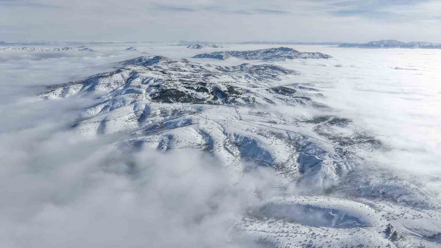 Elazığ’da kar yağışı sonrası kenti beyaz örtü kapladı. Harput Mahallesi, Hazar Gölü, Hazar Baba Kayak Merkezi ve kent merkezi dron ile görüntülendi.