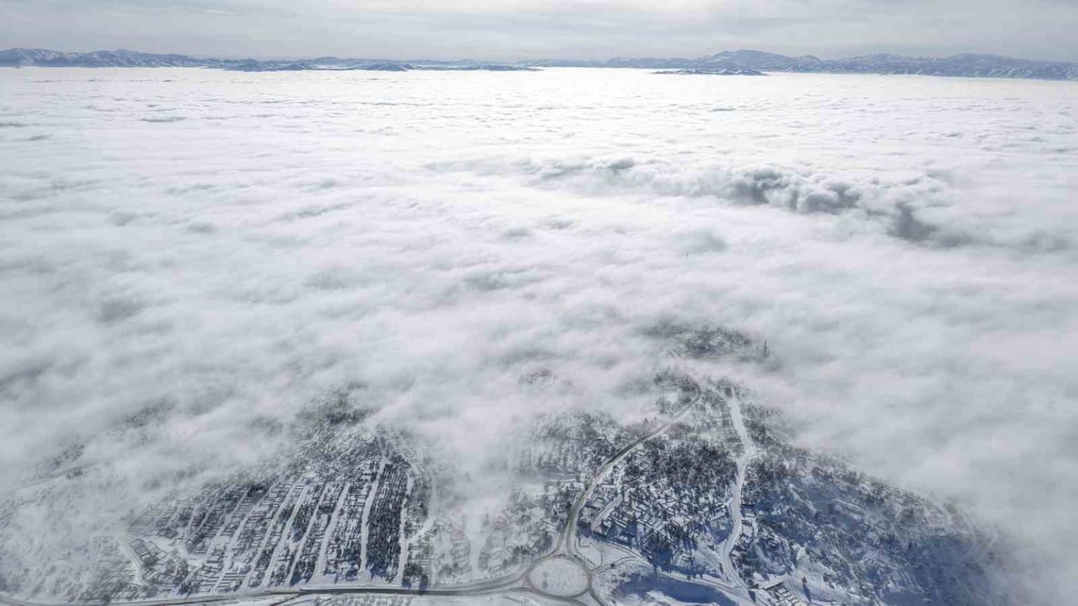 Elazığ’da etkili olan kar yağışının ardından kent genelinde beyaz örtü oluştu. Kar sonrası Harput Mahallesi başta olmak üzere tarihi alanlar, doğal bölgeler ve şehir merkezi havadan kayda alındı. Tarihi Harput Mahallesi’nde sokaklar, yapılar ve çevresi karla kaplandı. Bölgedeki tarihi dokunun kar örtüsüyle birlikte oluşturduğu görünüm, havadan çekilen görüntülere yansıdı. Hazar Gölü çevresinde kar yağışı sonrası göl yüzeyi ve kıyı şeridi sisle birlikte görüntülendi. Göl çevresindeki karlı alanlar ve düşük görüş mesafesi, dron çekimlerinde net şekilde kaydedildi. Hazar Baba Kayak Merkezi’nden Hazar Gölü yönüne doğru uzanan yüksek kesimlerde kar ve sis etkili oldu. Kayak merkezi çevresi, dağlık alanlar ve vadiler havadan görüntülendi. Elazığ kent merkezinde ise cadde, sokak ve yerleşim alanlarının karla kaplandığı görüldü. Kentin genel yerleşim yapısı ve ulaşım aksları dron görüntülerinde yer aldı.