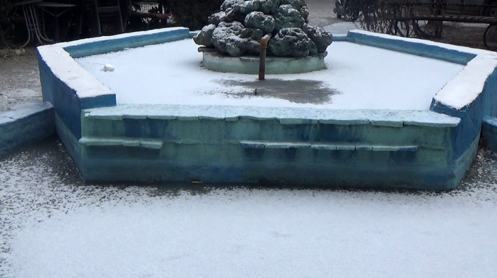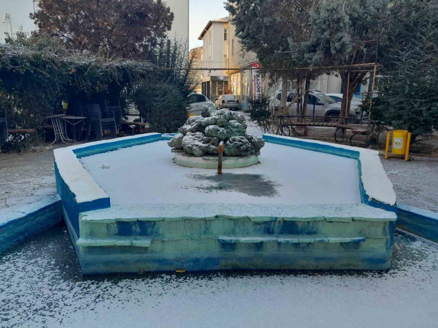 Konya’nın Karapınar ilçesinde kar yağışı ve dondurucu soğuk etkisini sürdürüyor. İlçede etkili olan kar yağışı çiftçileri sevindirirken, aşırı soğuktan süs havuzu dondu.