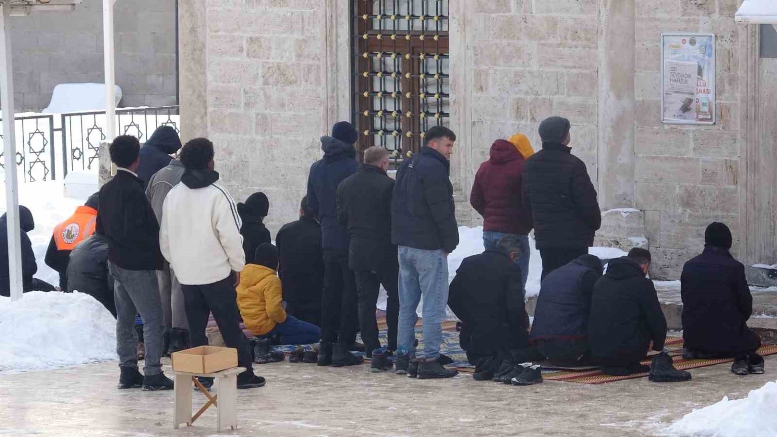 Sivas’ta sabah saatlerinde hava sıcaklığı sıfırın altında 19 derece olarak ölçüldü. Şehirde adeta hayat dondu. Cuma namazını kılmak isteyenler ise dondurucu soğuğa aldırış etmedi. Sivas’ta Kale camisinde camiye sığmayan cemaat, Cumana namazını açık alanda, sıfırın altında 10 derece soğukta kıldı.