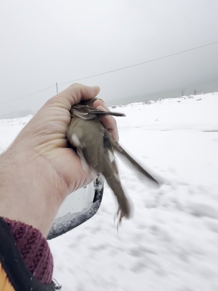Donmak üzere olan kuşu aracına alarak ısıttı
