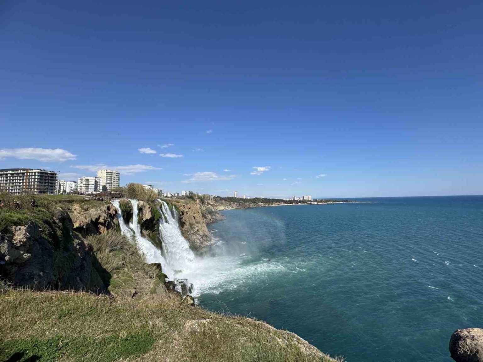 Antalya’nın Muratpaşa ilçesinde Düden Şelalesi’nde oluşan gökkuşağı, ziyaretçilere unutulmaz anlar yaşattı.