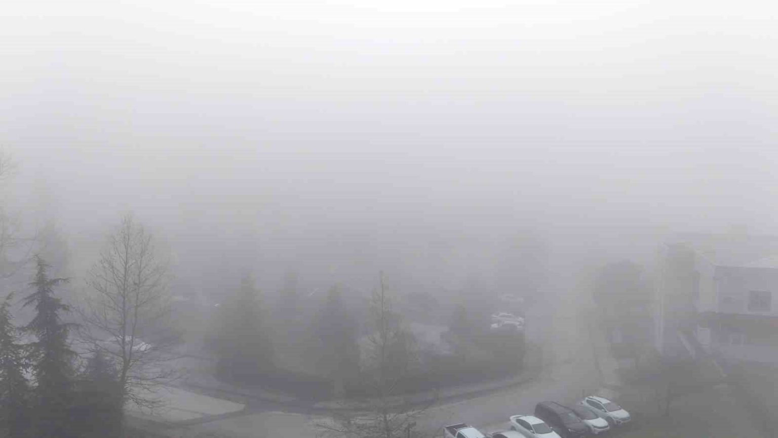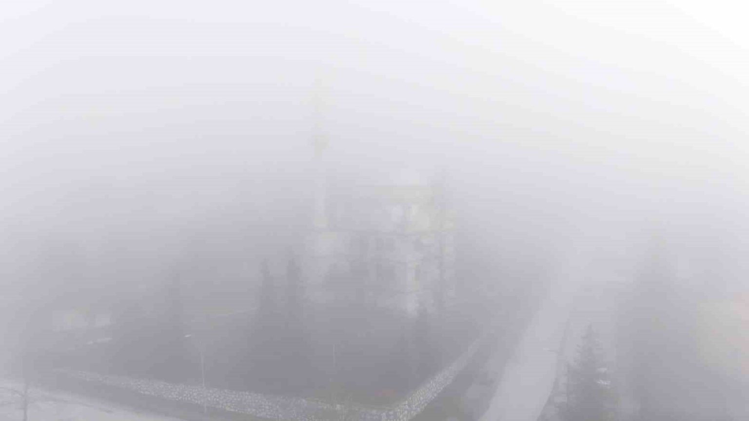 Kentin üzerini kaplayan yoğun sis tabakası, dron ile havadan görüntülendi. Kaydedilen görüntülerde, binaların ve şehir silüetinin zaman zaman sis içinde kaybolduğu görüldü.