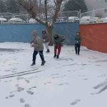 Kar yağışıyla beyaza bürünen okul bahçesi, çocukların neşesiyle birlikte adeta şenlendi.