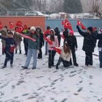 Okul bahçesinde arkadaşlarıyla bir araya gelen öğrenciler, kar topu oynayıp koşarak karın keyfini çıkardı. Çocukların sevinci yüzlerine yansırken, ortaya sıcak ve samimi anlar çıktı.