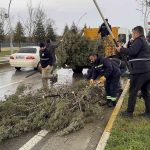 Edirne’de etkili olan fırtına hayatı olumsuz etkiliyor. Saatteki hızı 60 kilometreyi bulan rüzgar nedeniyle kökünden sökülen bir ağaç, park halindeki otomobilin üzerine devrildi. Bir başka ağaç da gövdesinden kırılarak yola devrildi. Belediye ekipleri devrilen ağaçları keserek yoldan kaldırdı.
