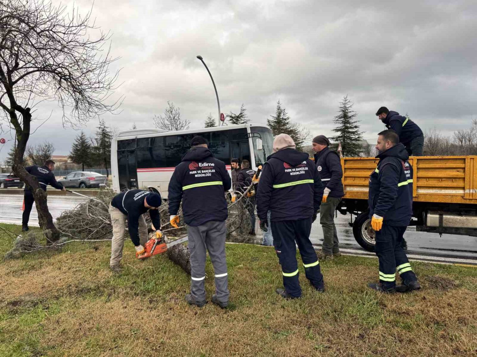 Edirne’de fırtına ağaçları devirdi