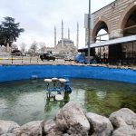 Edirne’de Meteorolojinin uyarılarının ardından gece saatlerinde etkili olan kar yağışı, ilerleyen saatlerde yerini dondurucu soğuğa bıraktı. Süs havuzları buz tuttu, çeşmeler dondu, cadde ve sokaklar sessizliğe büründü.