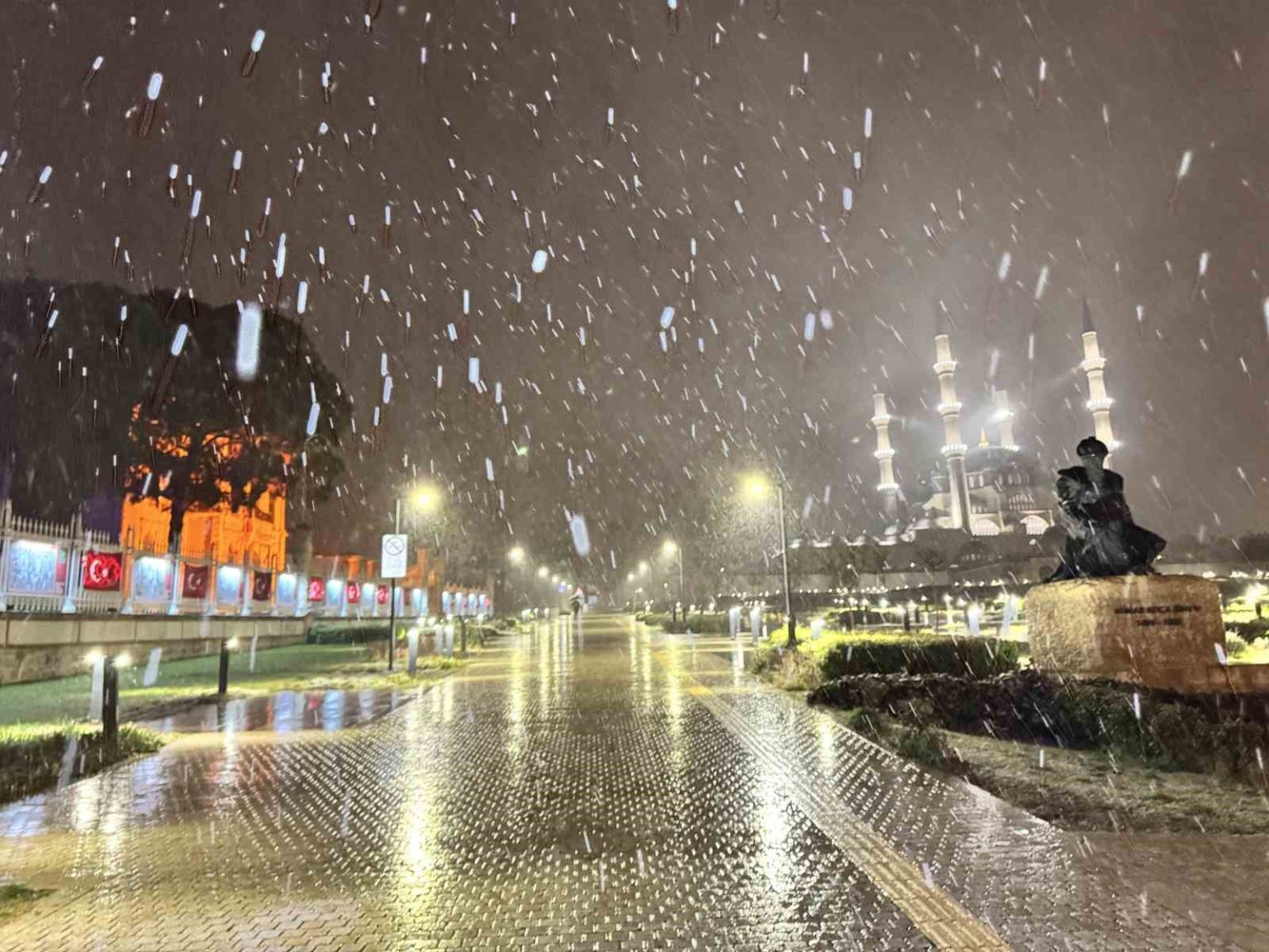Akşam saatlerinde hızını artıran kar yağışı, Selimiye Camii’nin görkemli siluetiyle birleşince izleyenleri mest etti. Kar tanelerinin minareler ve kubbelerle buluştuğu o anlar, hem Edirnelilere hem de ziyaretçilere eşsiz bir görsel şölen sundu. Vatandaşlar, yerlerde henüz birikme yapmasa da havada süzülen karın tadını Selimiye Meydanı’nda fotoğraf çektirerek çıkardı. Kar yağışı etkisini artırarak devam ediyor.