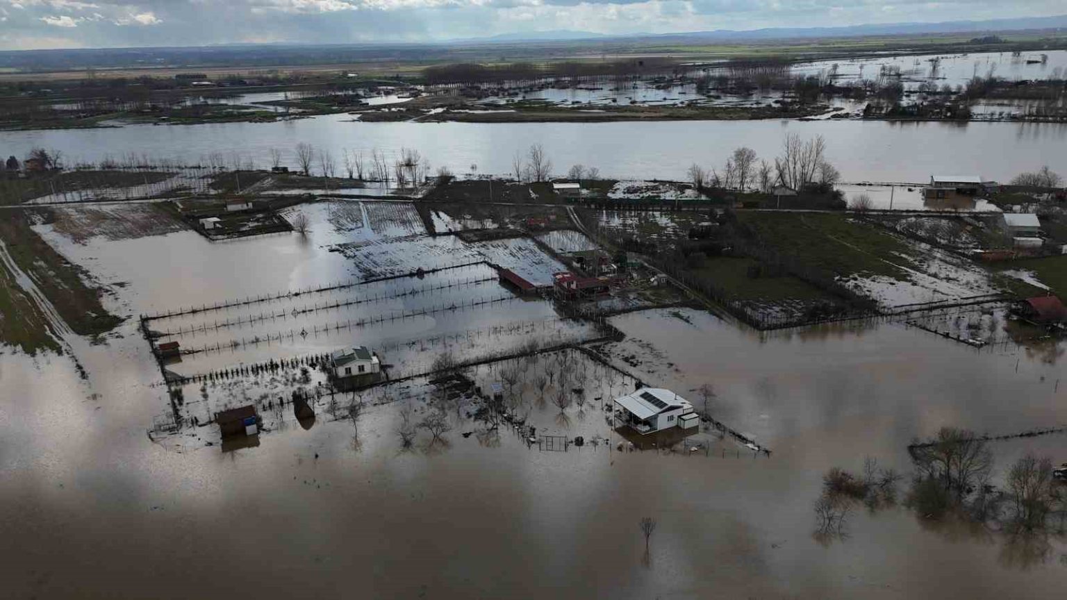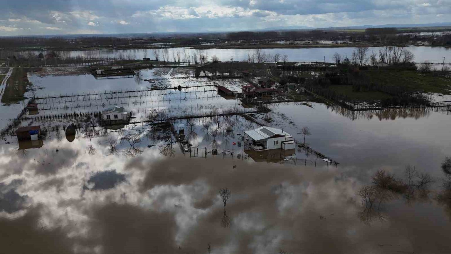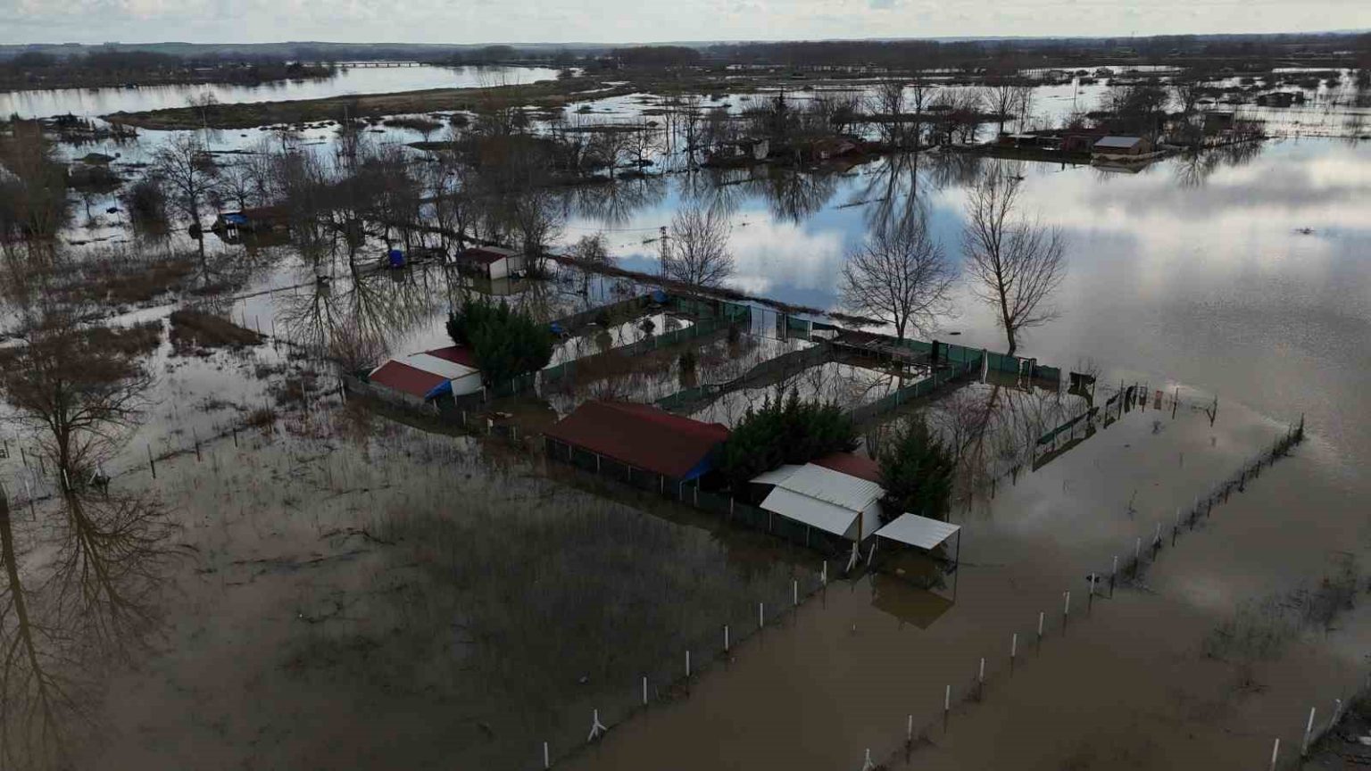Edirne’de Meriç ve Tunca nehirlerinde su seviyelerinde kısmi düşüş gözlenmesine rağmen taşkının bıraktığı izler birçok noktada devam ediyor. Nehir yataklarına yakın yerleşim alanları, çiftlikler ve tarım arazilerinin büyük bölümünün suyla kaplı olduğu görüldü. İpsala Ovası’nda taşkın sularının geniş bir alana yayıldığı, bazı tarım arazilerinde ise ciddi zarar oluştuğu belirtildi. Bölgede mahsur kalan hayvanların tahliyesi için ekiplerin çalışmaları sürüyor.