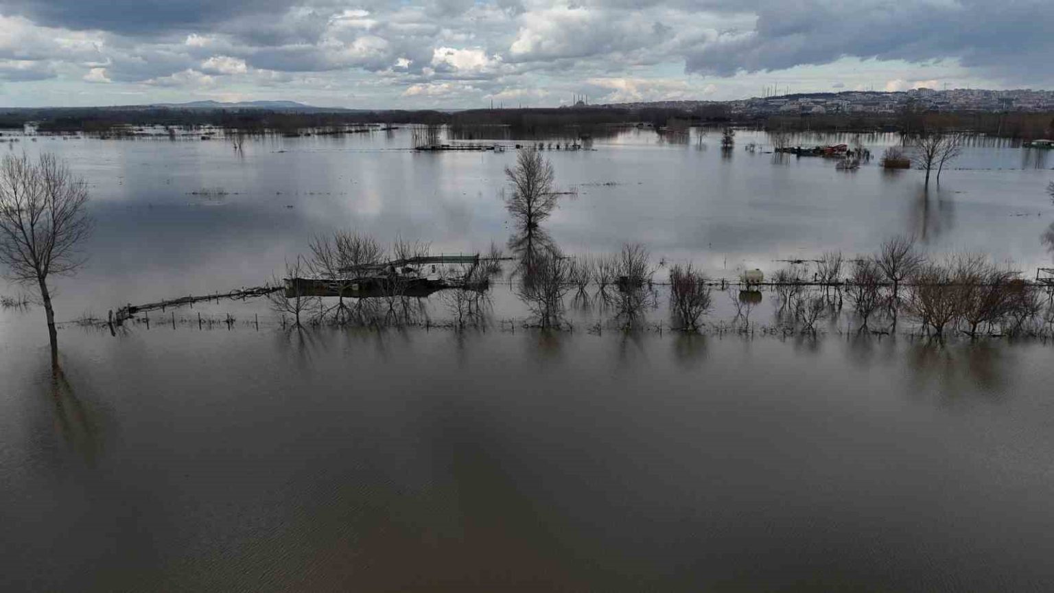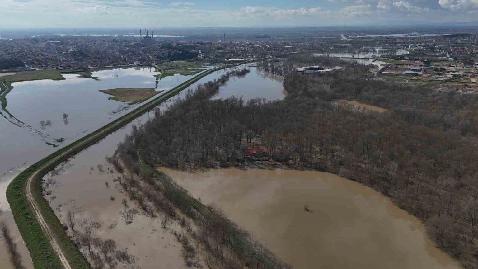 Edirne’de günlerdir etkili olan yağışlar ve Bulgaristan’daki barajlardan bırakılan suların ardından yaşanan taşkının etkileri havadan görüntülendi.