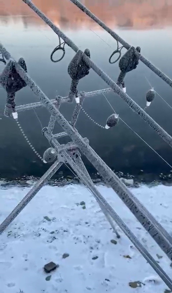 Eskişehir’den yola çıkan Çağlar Memiş ve arkadaşları, Bilecik’in Söğüt ilçesine kamp yapmak için gitti. Zemzemiye Göleti kenarında kamp kuran macera tutkunları, soğuk havaya rağmen balık tutmak için oltalarını suya attı. Eksi 22 dereceyi bulan havada gölet yaklaşık 7 santimetre kalınlığında buz tuttu. Oldukça soğuk olan havda Memiş ve arkadaşlarının göle attığı oltaları buz tuttu. Donan oltalarını gören ve şaşıran kampçılar, o anları cep telefonu kamerasıyla kaydetti.