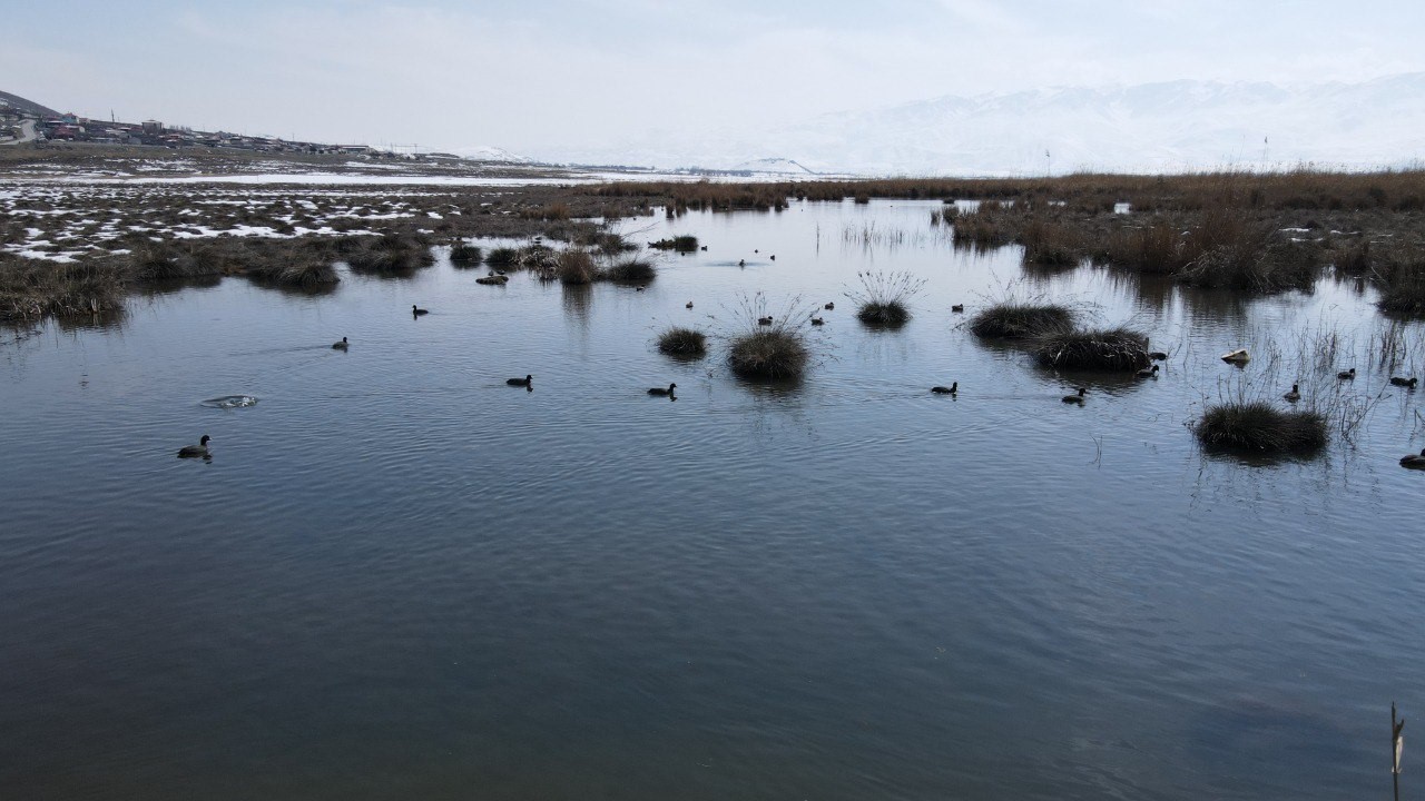 Kış mevsiminin etkisini sürdürmesine rağmen çok sayıda kuşun bölgeden ayrılmadığı gözlemlenirken, sulak alan üzerinde uçuşan kuş sürüleri etkileyici görüntüler oluşturdu.