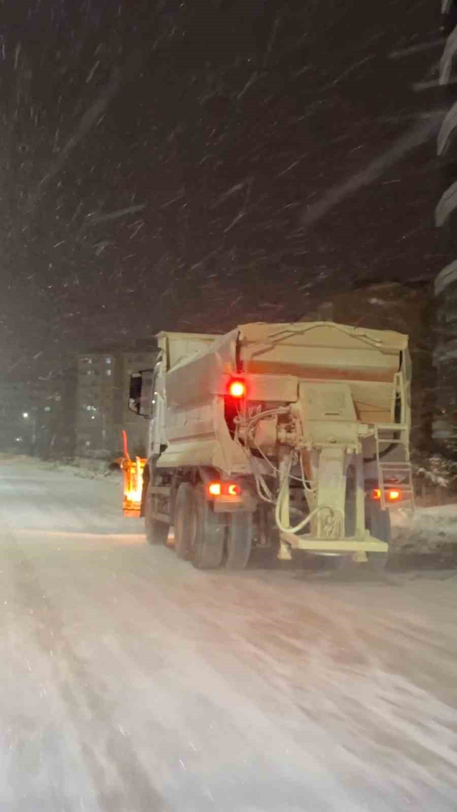 Elazığ’da akşam saatlerinde başlayan kar yağışı devam ederken, Elazığ Belediyesi 76 araç 283 personelle yol açma çalışmalarını aralıksız sürdürüyor.