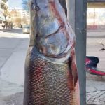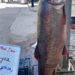 Elazığ’da bir balıkçı, 97 kilogram ağırlığında, 2 metre uzunluğunda turna balığı yakaladı.