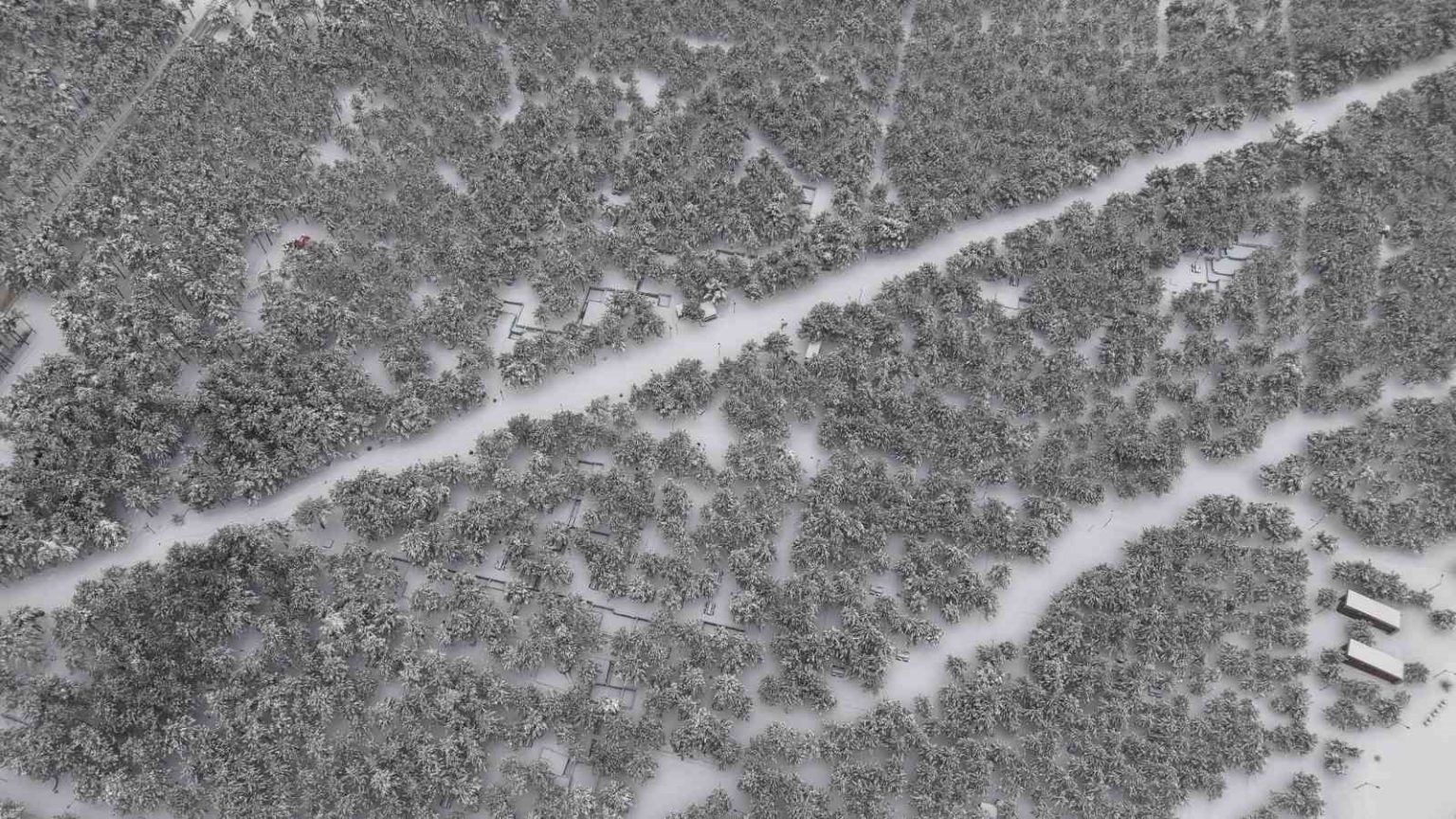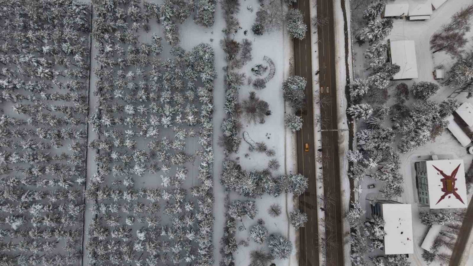 Elazığ’da kar yağışının ardından oluşan görüntüler, bu kez yüksek rakımlı dağlardan değil, şehrin merkezinden geldi. Beton binaların ve ana arterlerin çevrelediği Fırat Üniversitesi kampüsü içindeki ormanlık alan, kar yağışıyla birlikte şehir merkezinde dev bir kış bahçesine dönüştü. Genellikle kentin yüksek kesimlerinde görmeye alışık olunan yoğun kar manzaraları, bu kez Elazığ’ın en işlek noktalarından biri olan Zübeyde Hanım Caddesi’nin hemen yanı başındaki ormanlık alanda kaydedildi. Kültür Park’ın modern dokusuyla birleşen ormanlık alan, havadan görüntülendi. Dağ yollarını aratmayan kar yoğunluğunun şehrin göbeğinde sergilediği bu anlar, nadir kareler oluşturdu.