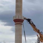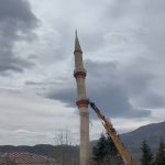 Elazığ’da hasarlı caminin minaresi iş makinesi ile yıkıldı