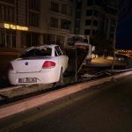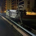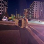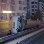 Elazığ’da sürücüsünün direksiyon hakimiyetini kaybettiği otomobil yan yattı, 1 kişi yaralandı.