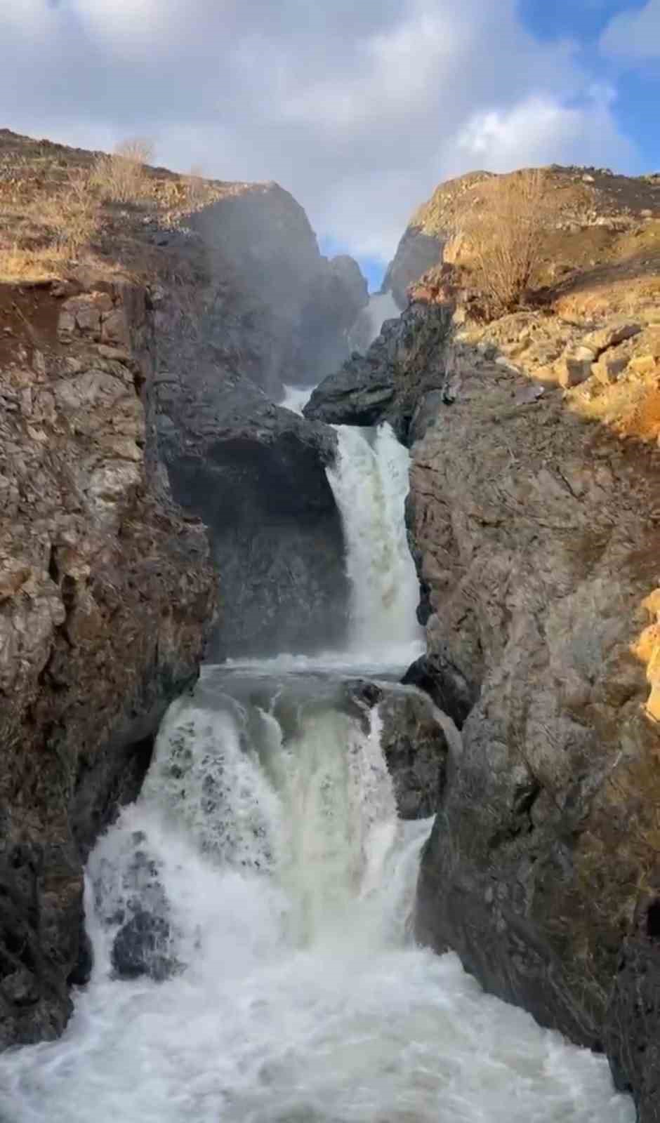 Elazığ ve ilçelerinde sağanak yağış etkili olurken, yağışın ardından Arıcak ilçesi sınırları içerisinde bulunan Sori Şelalesi coşarken o anlar cep telefonu kamerasına yansıdı.