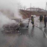 Elazığ’da alevlere teslim olan otomobil küle döndü.