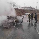 Elazığ’da yanan otomobil küle döndü