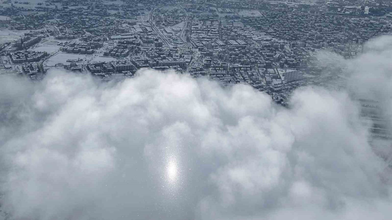 Harput’tan dron ile çekilen görüntülerde Elazığ kent merkezi karla birlikte beyaza büründü. Sis ve bulutların üzerindeki manzaralar, İzlanda ve Norveç’i aratmadı.