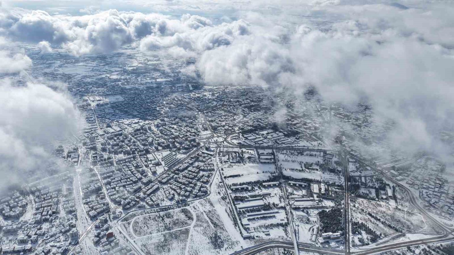 Elazığ’da sabah saatlerinde etkili olan ve gün boyunca aralıklarla süren kar yağışı, kenti beyaza bürüdü. Harput’tan dron ile havadan kaydedilen görüntülerde Elazığ kent merkezinin karla kaplandığı net şekilde görüldü. Sis ve bulutların üzerinde çekilen dron görüntüleri ise görsel şölen sundu. Ortaya çıkan manzaralar, İzlanda ve Norveç’in meşhur kış manzaralarını geride bırakırken, “Burası ne İzlanda ne Norveç, burası Elazığ” dedirtti.