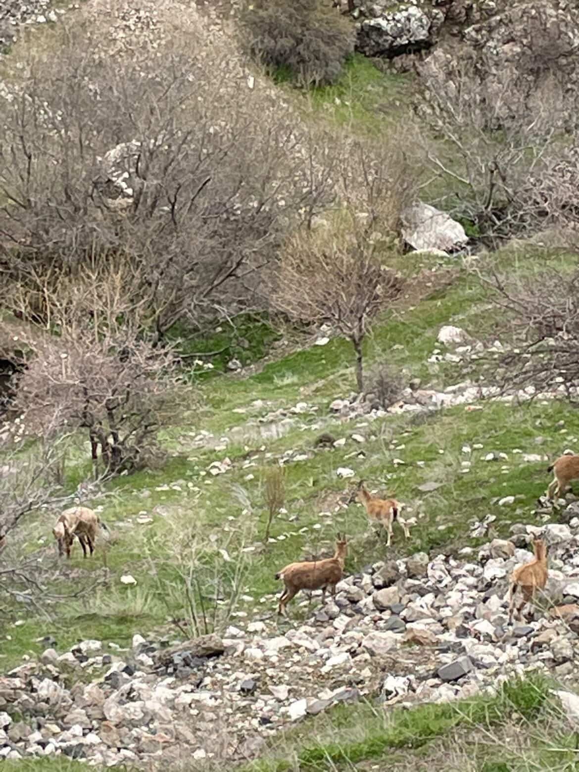 Elazığ’ın Harput Mahallesi’ndeki kayalık alanlarda ortaya çıkan dağ keçileri, vatandaşların dikkatini çekti. Tarihi dokusuyla bilinen Harput’ta sürü halinde görüntülenen dağ keçileri, kısa sürede gözden kayboldu.