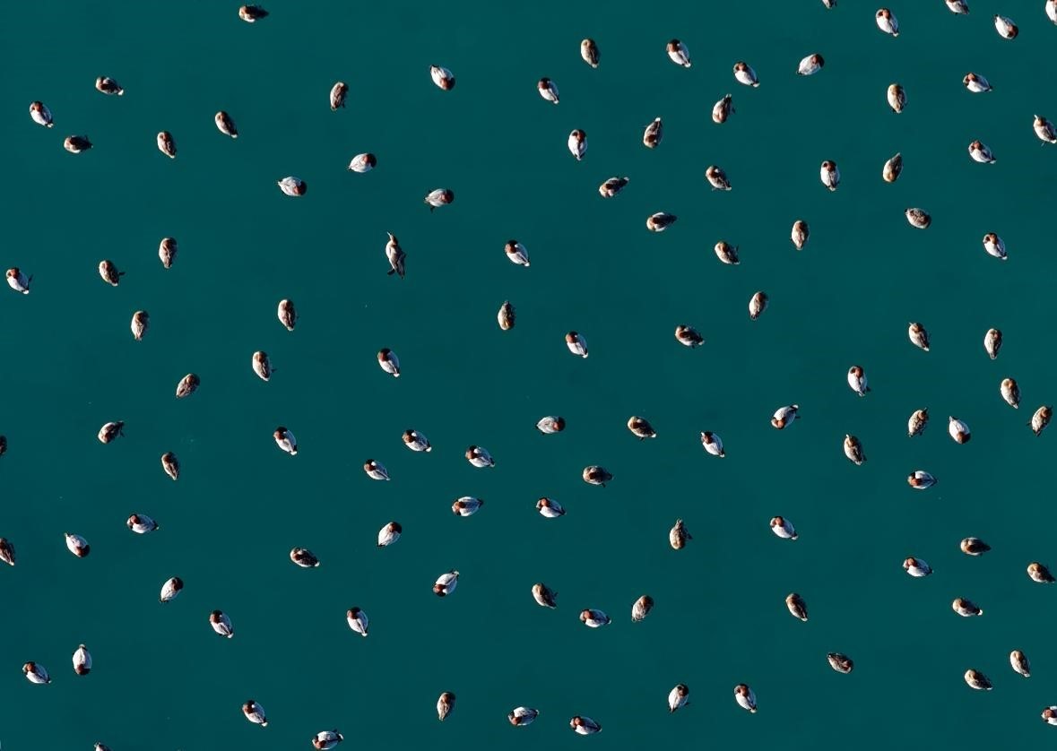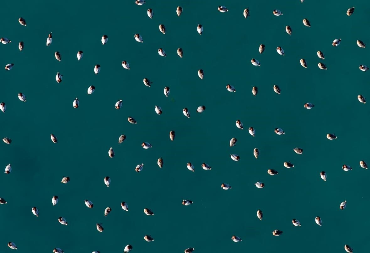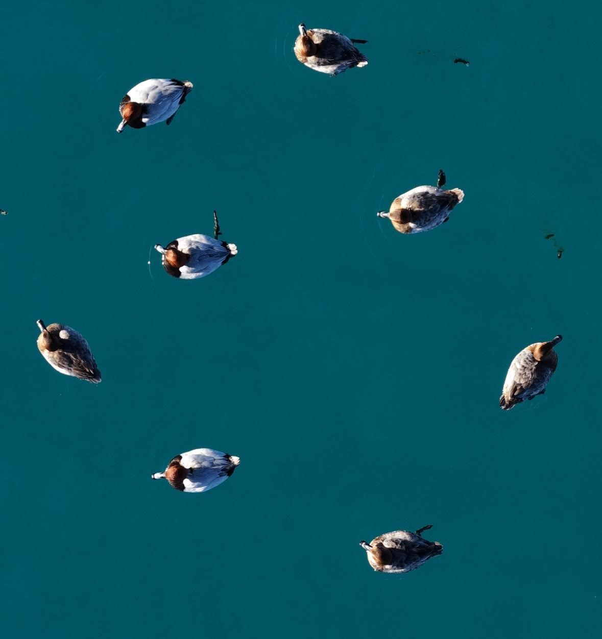 Burdur’un Yeşilova ilçesinde yer alan Salda Gölü’nde göç döneminde bölgeye gelen elmabaş patka ördekleri havadan görüntülendi.